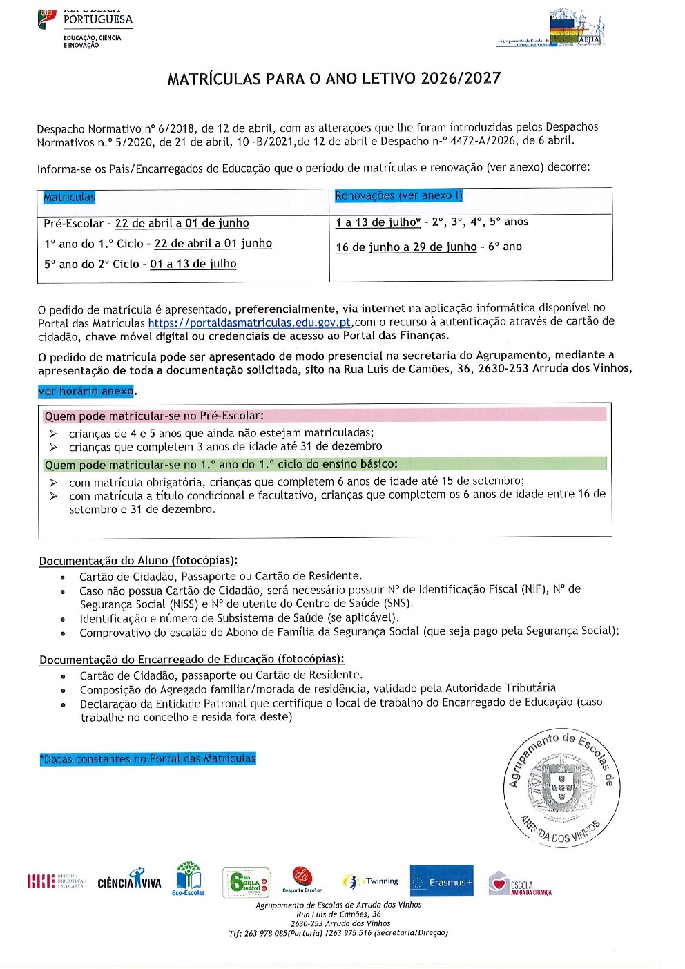 Informação aos Pais/Encarregados de Educação